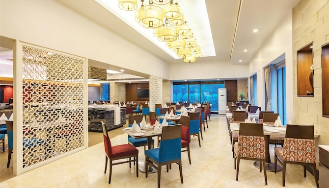 Sample a variety of flavors at Radisson Hotel Varanasi’s exceptional dining venues. Choose from two on-site restaurants, a cozy bar, or a relaxed lounge. Savor rich vegetarian and non-vegetarian kebabs at The Great Kabab Factory, or enjoy a fusion of Indian and international cuisine at eastWEST. Unwind with cocktails and premium spirits at The Oakwood Bar, or opt for light bites and beverages at R The Lounge.