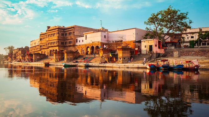 Step into the spiritual heart of Vrindavan, where each ghat along the sacred Yamuna River echoes with the timeless stories of Lord Krishna. Iconic sites such as Kaliya Dah Ghat, Govind Ghat, Keshi Ghat, Koriya Ghat, Naya Ghat, Raj Ghat, Kaliya Ghat, Varah Ghat, and Cheer Ghat beckon pilgrims seeking purification and divine blessings to bathe in their holy waters. Overflowing with legends, from tales of celestial battles to vibrant Aarti ceremonies, these ghats are alive with history, devotion, and an unbroken connection to the divine. Immerse yourself in their spiritual energy and let the sacred aura of Vrindavan captivate your soul.