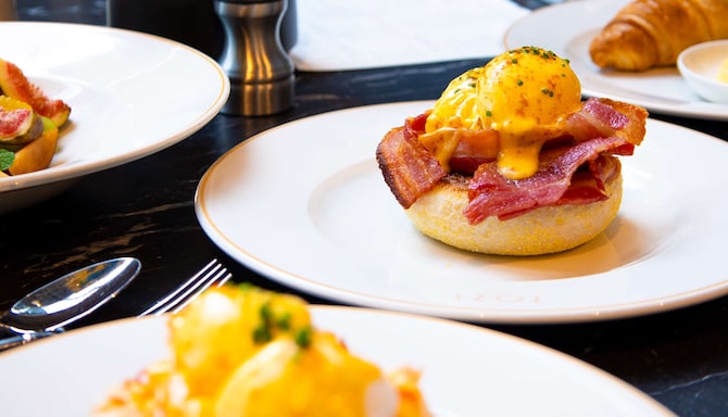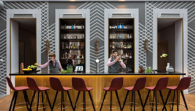 Otro servicio excepcional que ofrece art’otel Berlin Mitte es la experiencia gastronómica del bar restaurante Upside Down. Este mítico lugar de encuentro en el centro de Berlín ofrece una combinación única de historia, estilo, arte magistral y diseño contemporáneo, junto con una experiencia gastronómica excepcional y moderna. Deléitate con una selección de platos internacionales y mediterráneos, así como con una variada selección de vinos y cócteles exclusivos.