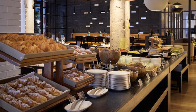 Disponible las 24 horas del día, nuestro menú de servicio de habitaciones en la habitación ofrece una cuidada selección de platos para el desayuno, a la carta y para cenar durante todo el día, así como una amplia carta de bebidas. Descubre los platos característicos de Leicester Square Kitchen y los clásicos de la gastronomía local del servicio de habitaciones cómodamente en tu habitación o suite.