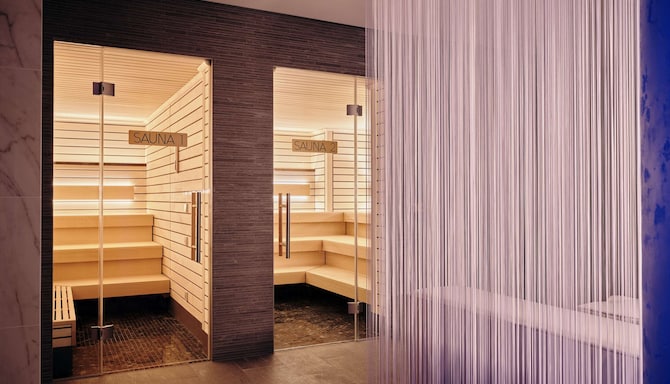 Disfruta de la atmósfera relajante de la zona de sauna, piscina y gimnasio, un oasis de tranquilidad diseñado para ayudarte a recuperarte y rejuvenecer.