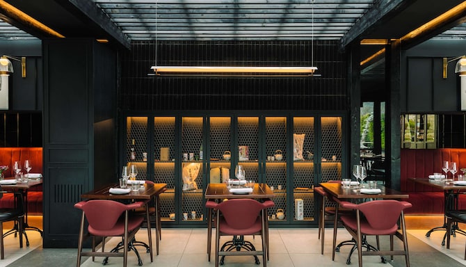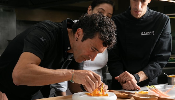 Pasa una velada inolvidable en nuestro bar clandestino de la azotea, adornado con jardines verticales, sombrillas de colores y unas impresionantes vistas de Bilbao. Si quieres vivir una experiencia gastronómica única, disfruta de la trilogía perfecta de sabor, textura y estética en el restaurante Eneko Basque Bilbao de Eneko Atxa.