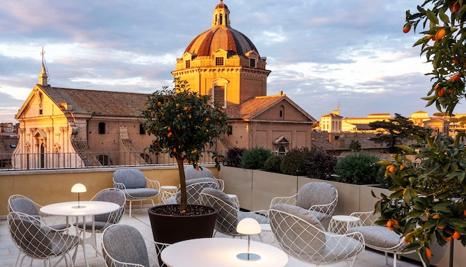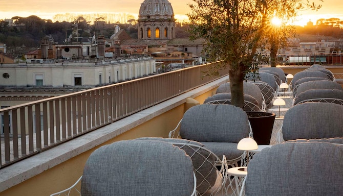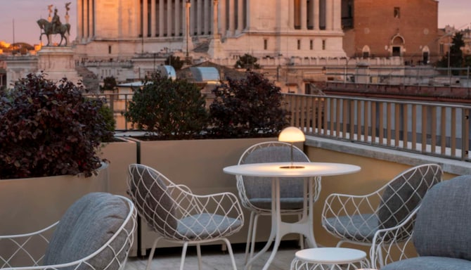 Celebra tu día especial en el corazón de Roma en el Radisson Collection Hotel, Roma Antica; el lugar perfecto para celebrar una boda íntima, recepciones elegantes y festejos preboda inolvidables. Nuestra terraza exclusiva Modius On The Roof ofrece vistas insuperables 360 grados de la ciudad, creando un fondo impresionante para tu boda o recepción. Este espacio único puede albergar hasta 100 invitados y también es perfecto para un reunión elegante la noche anterior con tus amigos y familia, sentando las bases de una celebración realmente inolvidable.