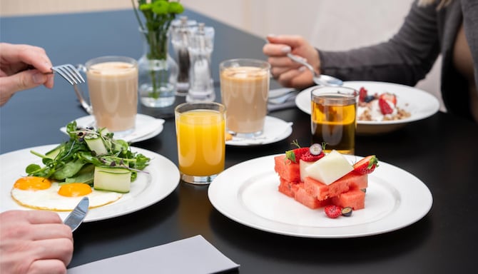 Täydennä ateriasi tuoremehuilla, maustetuilla vesillä ja smoothieilla hyvinvointijuoma-asemaltamme. Myös muut kuin yöpyvät asiakkaat ovat tervetulleita. Hotellin vieraat voivat ostaa aamiaisen vastaanotosta tai ravintolasta.