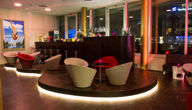 Le bar offre une capacité de 96 couverts, dans une atmosphère lounge contemporaine, baignée de lumière naturelle. Les jours de beau temps, installez-vous dans le patio et admirez la vue sur les bateaux qui descendent le Rhin. Vous voyagez avec des enfants ? Des chaises hautes sont disponibles sur demande.