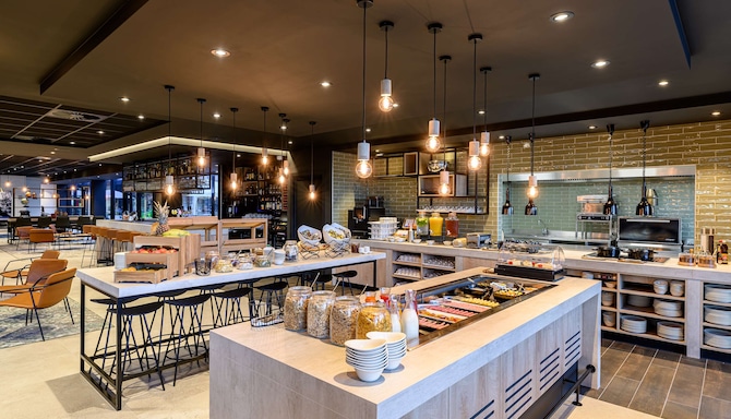 Notre restaurant sur place, le Bar & Grill vous accueille tous les jours au petit-déjeuner. Vous pourrez déguster des viennoiseries fraîches préparées par notre boulanger sur place, ainsi qu'une sélection variée de spécialités habituellement servies au petit-déjeuner. Cet espace de restauration confortable sert également le déjeuner en semaine et le dîner du lundi au samedi, les spécialités cuites au moyen de notre barbecue intérieur spécial sont très appréciées.