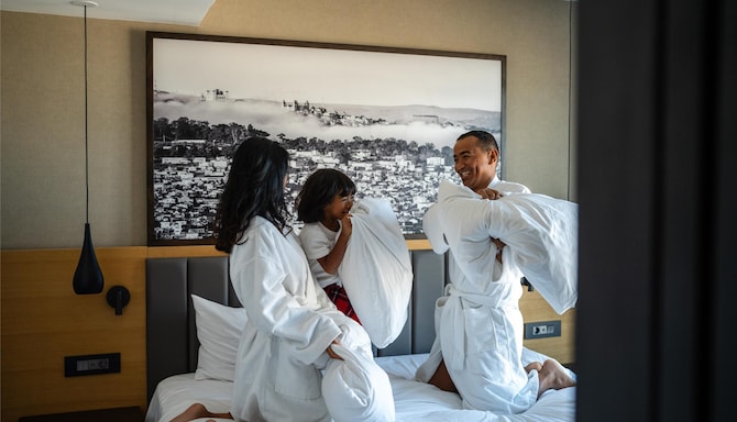 Profitez d'une vue imprenable sur Antananarivo depuis nos chambres et nos suites. Notre gamme de services et d'équipements, soignée dans les moindres détails, vous garantit un séjour de détente inoubliable.