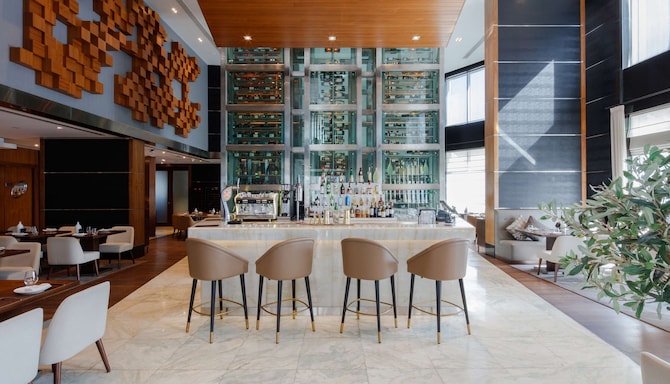 Notre hôtel propose une excellente cuisine dans le cadre confortable de notre établissement : il n’est donc pas nécessaire d’aller loin pour savourer un bon repas. Nous souhaitons cibler un public varié en proposant des plats internationaux et des menus pour enfants. Pour vous rafraîchir pendant la journée ou prendre un en-cas entre les repas, rendez-vous dans nos deux bars sur place.