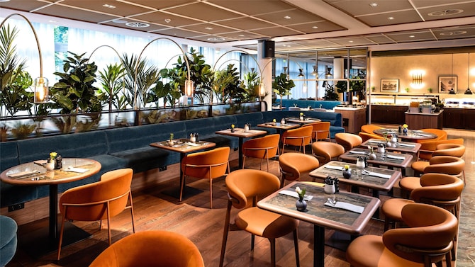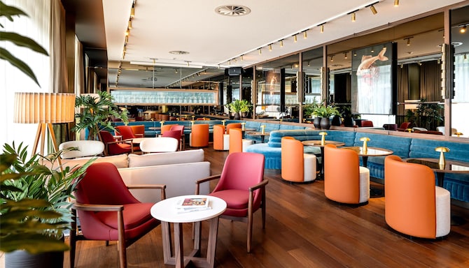 Profitez de notre sélection de bières locales, de cocktails tendance et de vins raffinés, accompagnés d'une variété de plats de bar, le tout au cœur du vibrant Media Harbour de Düsseldorf.