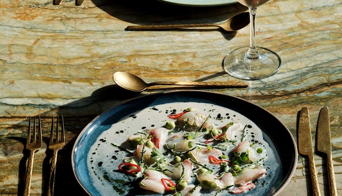 מי שרוצה מנה קלילה יותר, עם נגיעה אקזוטית, יכול לבחור בדג לברק ברוטב קוקוס אם ליים, כוסברה וקרם אבוקדו. זוהי מנה שהיא יצירת מופת. התפריט מבוסס על המטבח הים-תיכוני, עם מרכיבים מקומיים של יוון, בתוספת טעמים אקזוטיים שיוצרים הרמוניה של טעמים.