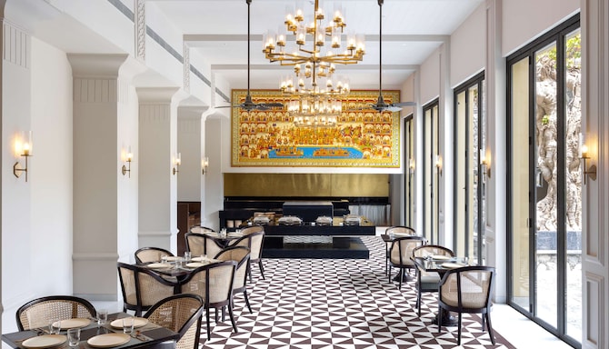हमारे स्टाइलिश रेस्तरां में स्वादिष्ट स्थानीय और अंतरराष्ट्रीय व्यंजनों का आनंद लें, या शानदार दृश्यों के साथ हमारे जीवंत आउटडोर बार में आराम करें