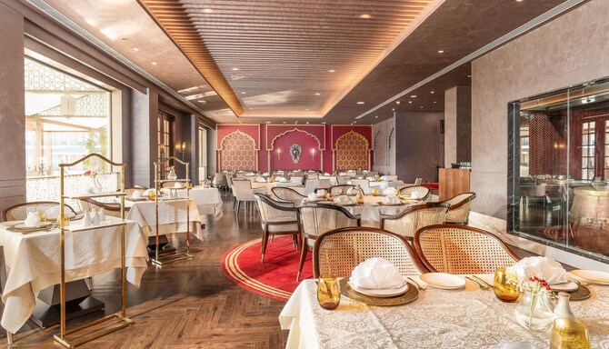 Firdaus (फिरदौस) रेस्टोरेंट में एक भव्य मील का आनंद उठाइए जिसकी खासियत हैं पारंपरिक गर्मागर्म हर्बल ड्रिंक कहवा और कश्मीरी पकवान। शाम को पारंपरिक कश्मीर वाजवान के डिशों और कुछ अवधी व्यंजनों के साथ स्वागत भरे माहौल और लाइव संगीत का आनंद लें।