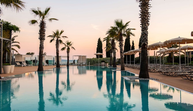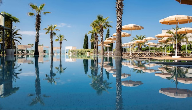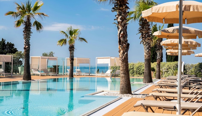 Predahnite od opuštanja uz bazen i uživajte u našim svježim jelima mediteranskog stila posluženim na otvorenom.