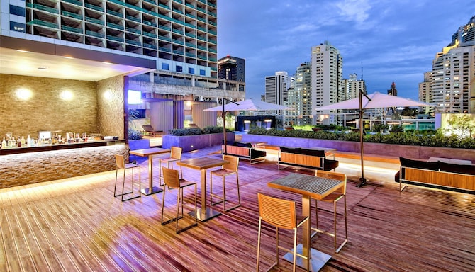 Dopo aver assistito a un concerto o aver passeggiato per i sentieri curati del Parco Lumpini, fai il pieno di energia in uno dei nostri tre moderni ristoranti. Il Radisson Blu Plaza Bangkok serve selezioni appetitose per tutti i gusti, dalle pizze con mozzarella di bufala fresca ai fagottini di gamberi croccanti. Potreai inoltre ammirare le emozionanti viste di Bangkok da uno dei nostri tre eleganti bar.