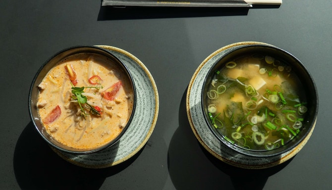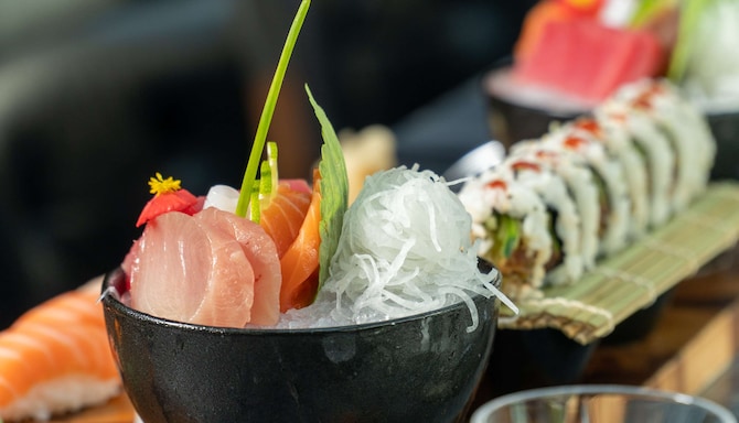 Scegli tra i nostri piatti sani, nutrienti e appetitosi preparati dai nostri talentuosi chef e accompagnati dalle bevande del nostro bar. Oltre ai liquori asiatici e al sakè, c'è un'ampia selezione di vini di alta qualità tra cui scegliere.