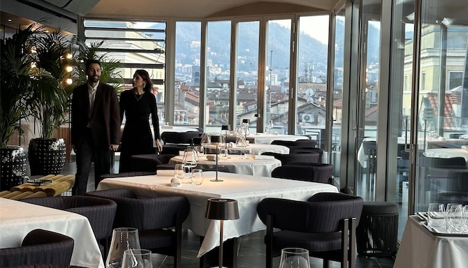 Approfitta di esperienze culinarie eccezionali, dagli spuntini informali serviti tutto il giorno nel nostro bistrot alla cucina gourmet e ai cocktail nel nostro ristorante e bar all'ultimo piano con vista panoramica, con terrazza panoramica affacciata sul Lago di Como.