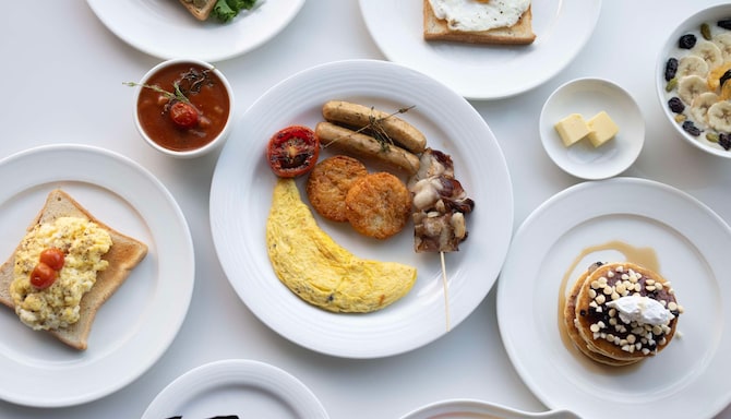 「カフェブルー」では、リラックスした雰囲気の中で、インド料理、西洋料理、アジア料理といった多彩な味覚をお楽しみいただけます。一日の始まりには、スーパーブレックファストビュッフェをどうぞ。インタラクティブキッチンでは、お客様だけの特別な一皿をその場でお作りします。ディナータイムには、ビュッフェの他、終日ご利用いただける美味しいアラカルトメニューも豊富にご用意しております。