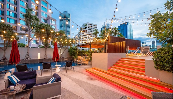 Open all day, Mezza restaurant serves a rich blend of local Thai specialties and international favorites at Park Plaza Bangkok Soi 18 in Sukhumvit. Create your own burger with a side of truffle fries, order a bowl of spicy tom yum goong soup, or indulge in a flavorful pasta carbonara. You can stop by Chai in the lobby for a fresh cup of coffee or tea while you catch up on the news. Want to dine alfresco? Visit the Sway Rooftop Bar and Pool to enjoy light snacks and creative cocktails beside the water. If you’d prefer to dine in the comfort of your accommodations, room service is available.