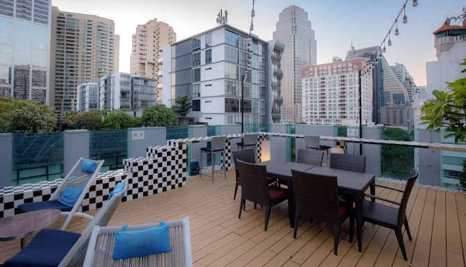 Enjoy light bites and cocktails at our rooftop bar in Bangkok