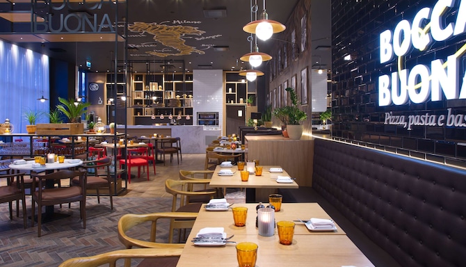 Apmeklējiet mūsu viesnīcas pusdienošanas vietu Bocca Buona, lai izbaudītu īstu Itālijas sajūtu jebkurā dienas laikā. Mūsu modernajā restorānā tiek pasniegta garda brokastu bufete un apetīti rosinoši pusdienu un vakariņu ēdieni. Omulīgā atmosfēra, itāļu un starptautiskie ēdieni, kas pagatavoti no svaigām sastāvdaļām, kā arī plašais vīnu sortiments palīdzēs jūsu nakšņošanu padarīt neaizmirstamu.