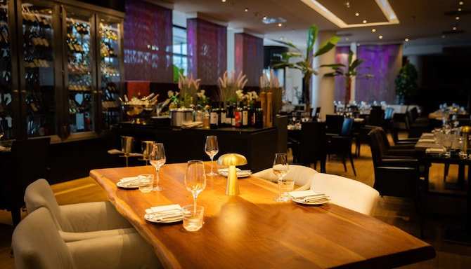 Proef de authentieke smaken van de Barbarijse Kust bij Balaustine in het Radisson Blu Hotel, Hamburg. Onze eigen eetruimte en bar bieden een heerlijk aanbod van traditionele en gemoderniseerde gerechten, aangevuld met levendige cocktails in een warme en gezellige sfeer. Geniet van een gedenkwaardige eetervaring tijdens de lunch en het diner en deel de borden met vrienden of familie terwijl u het rijke erfgoed van de Levantijnse keuken viert.