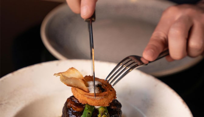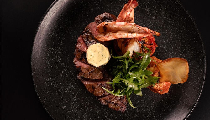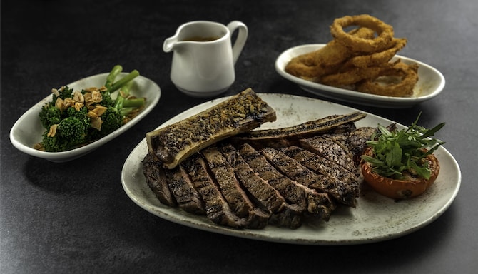 Steak en wijn: Geniet van een porterhouse steak of een ribeye van 450 gram met twee bijgerechten naar keuze voor twee personen voor AED 395. Voeg een fles huiswijn toe en betaal AED 495.