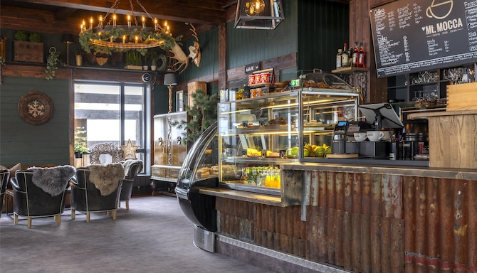 Mt. Mocca, med sin varme atmosfære, er det perfekte stedet å ta en pause fra alle fjellaktivitetene, både om sommeren og på vinteren. Stedet har også en praktisk takeaway-tjeneste hvis du ønsker å nyte kaffen eller snacksen din i den friske fjelluften.