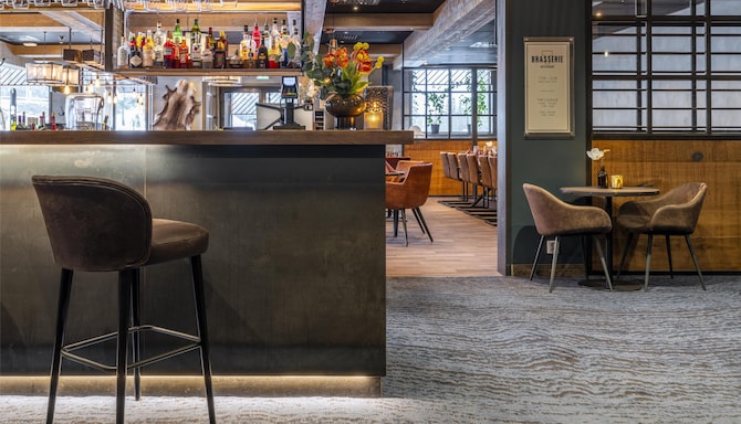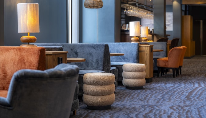 The Lounge ligger praktisk til rett ved siden av Brasserie T. Her kan du nyte en god drink og litt lett snacks, enten etter en aktiv dag eller som en perfekt start på kvelden.