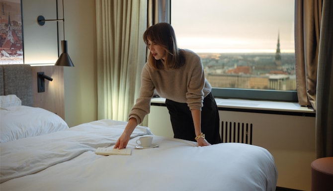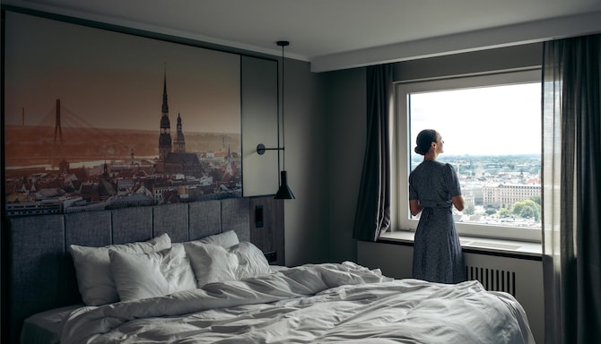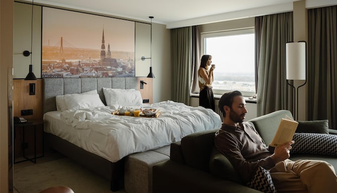 Wybierz jeden z naszych 571 doskonale wyposażonych pokoi i apartamentów i ciesz się zakwaterowaniem na najwyższym poziomie w centrum Rygi. Wszystkie pokoje oferują komfortowe wnętrza dla osób niepalących z bezpłatnym i szybkim wi-fi, telewizorem z systemem Chromecast, sejfem, profesjonalną suszarką do włosów, zestawem do parzenia kawy i herbaty, żelazkiem z deską do prasowania oraz lusterkiem powiększającym dla wygody gości. Do dyspozycji gości mamy również pokoje dostosowane do potrzeb osób niepełnosprawnych (dostępne na żądanie). Rozgość się przy filiżance kawy lub herbaty z bezpłatnego zestawu powitalnego i rozpocznij każdy dzień od pysznego i pożywnego śniadania w formie bufetu.