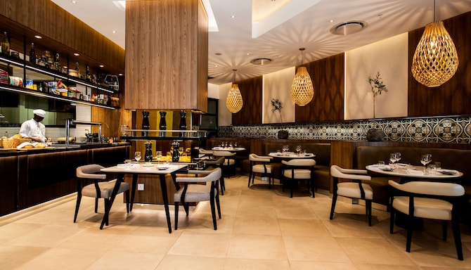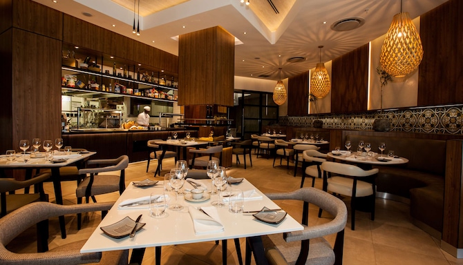 Localizado no térreo do edifício Residence, o Azul convida você a embarcar em uma jornada gastronômica onde clássicos internacionais ganham um toque local.