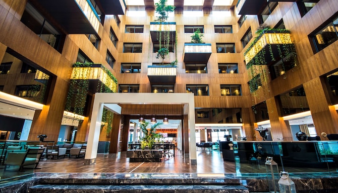 Ресторан Casa Grill, удобно расположенный на уровне лобби, предлагает гостям интересный выбор блюд местной и международной кухни. Главный ресторан отеля с выбором блюд из меню находится у очаровательного декоративного бассейна, что создает уютную и приятную атмосферу. Летом гости могут насладиться блюдами на открытой террасе, окруженной пышной зеленью, в тени от деревьев - это идеальная обстановка для спокойной трапезы.