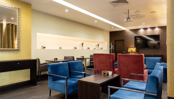 Здесь можно провести деловую или дружескую встречу и изучить тщательно составленное меню бара, включающее изысканные алкогольные напитки, уникальные коктейли и вкусные легкие закуски, которые оставляют приятное впечатление.