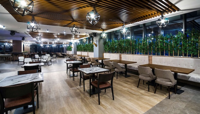 А можно просто посидеть у открытого камина, пробуя блюда турецкой и международной кухни. Наслаждайтесь напитками и блюдами высшего качества, которые можно отведать как в помещении, так и на улице. Отправляясь на весь день на горнолыжные трассы, не забудьте зарядиться энергией за завтраком (шведский стол). А в конце дня можно расслабиться в главном ресторане или лаундже.