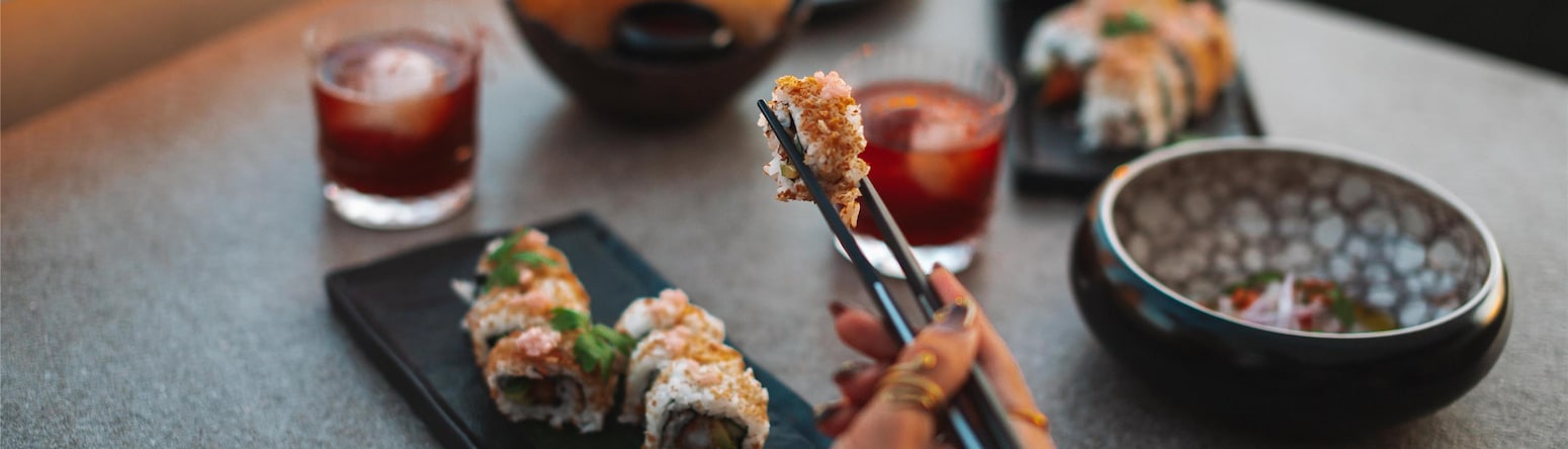 Попробуйте наши авторские шедевры из свежих сезонных ингредиентов, натуральные вина и оригинальные интерпретации любимой классики. Дополните напитки закусками кухни никкей: суши с перцем ахи амарилло, цитрусовым сашими и морепродуктами на гриле - все эти блюда созданы для того, чтобы пробовать их вместе.