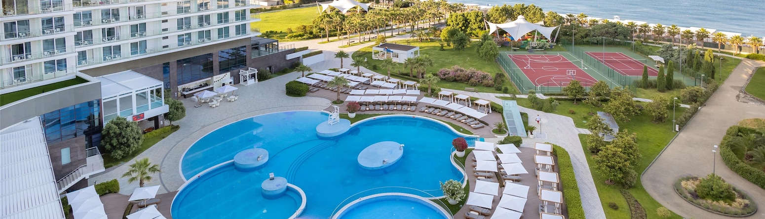 Благодаря великолепному виду на бескрайнее море на рассвете, увлекательным развлечениям, расслабляющему спа-комплексу и золотым закатам здесь есть все необходимое для создания незабываемых воспоминаний. Каждый день в курортном комплексе Radisson Collection Парадиз СПА, Сочи будет особенным. Мы предлагаем 501 номер с потрясающим видом на море и горы, или вы можете выбрать одну из 6 вилл с отдельными бассейнами, чтобы сделать свое пребывание еще лучше.