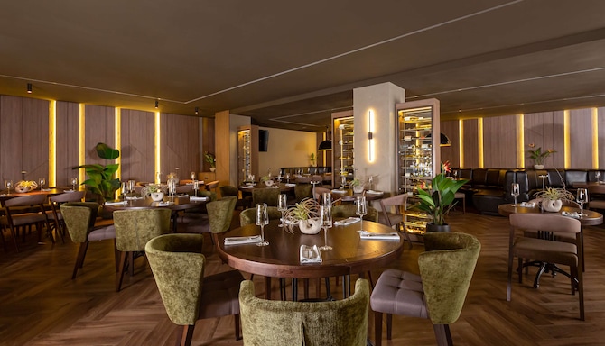 Приходите на завтрак, обед, ужин и вечерние напитки в ресторан и бар отеля Radisson Hotel Ulyanovsk. В ресторане Gallery подают завтрак (шведский стол), а днем и вечером в любой день недели здесь можно заказать восхитительные блюда по меню. В нашем стильном баре Gallery в уютной атмосфере подают легкие закуски к пиву, вину, коктейлям и безалкогольным напиткам.