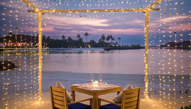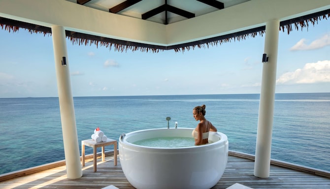 Våra 128 rymliga villor på stranden och över vattnet har privata pooler och fantastisk utsikt. Snorkla med livet under ytan eller prova på spännande vattensporter som att åka jetski eller seabob. Utforska tillsammans med vårt 5-stjärniga dykcenter, koppla av med en behandling på Blu Spa eller yoga i vår paviljong över vattnet medan de små skapar minnen som varar på vår Kid’s Club.