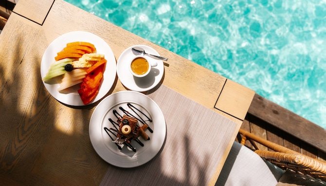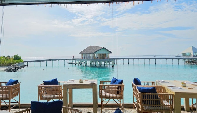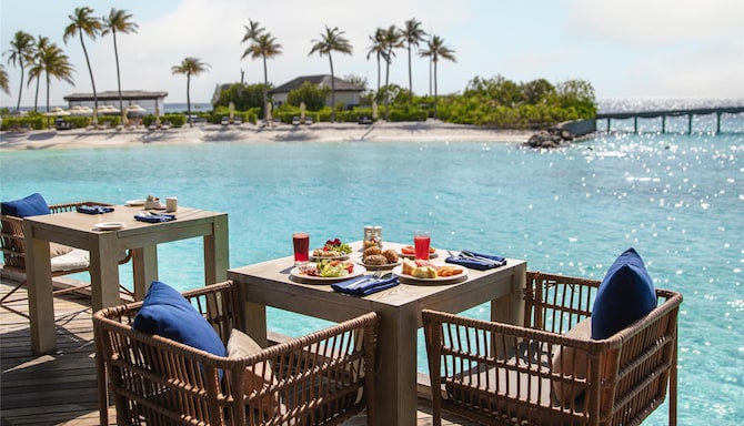 Vår frukostrestaurang ligger högt över Indiska Oceanens kristallklara vatten. Här får du en rofylld start på dagen med panoramavyer som är lika oförglömliga som maten.