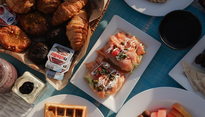 Njut av matlagningsstationer i realtid där kockarna förbereder ägg, våfflor och pannkakor efter dina önskemål och sedan serverar dem helt nytillagade och varma. Komplettera måltiden med en massa bakverk som omsorgsfullt bakas varje morgon.