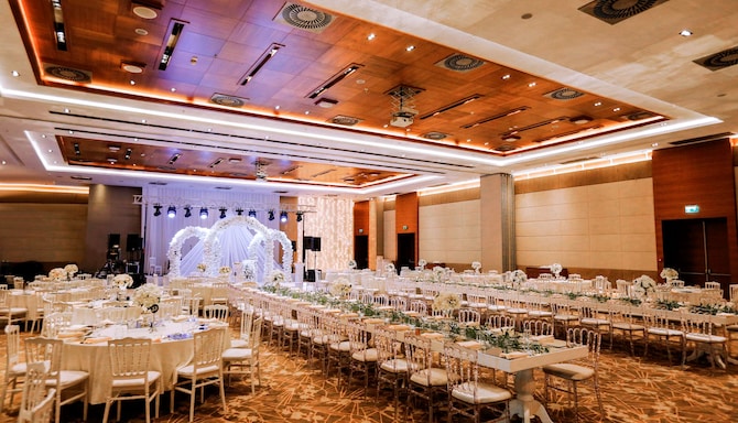Şehrin koşuşturmasından uzakta, Radisson Blu Hotel & Spa İstanbul Tuzla'da canlı yeşil alanların keyfini çıkarın. Tercihiniz ister iç ister dış mekan düğünü olsun; yemyeşil çimlerimiz, havuz kenarındaki alanımız ve büyük balo salonumuz ideal kutlama mekanını sunar. Yeşil çimler ve havuz başı alanlarımızın her biri 600 misafire kadar alan sağlar. Düğün çifti olarak düğün gününüzde Teraslı Sauna Süitlerimizden birinde kendinizi şımartabilirsiniz. Profesyonel ekibimizin yardımıyla huzur dolu otelimizde mükemmel düğün kutlamanızı planlayın.