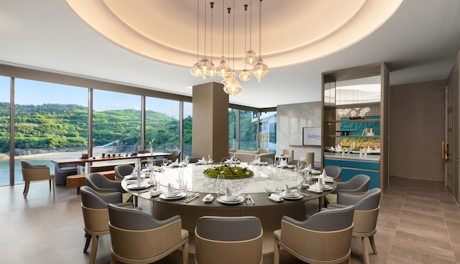 在“晨曦全日制餐厅”,随时尽享风味美食。以丰富营养的“超级早餐”开启活力早晨,甄选多款自助美食,满足多样口味需求。餐厅坐拥开阔海景,并设有私密包厢空间,是举办私人聚会或商务午餐的理想之选。