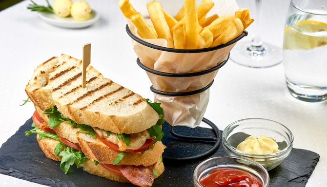Café 17 咖啡厅餐饮类型: 糕点Café 17 咖啡厅在午餐和晚餐时段供应国际美食和乌克兰美食,包括经典汉堡、传统罗宋汤和基辅炸鸡等等。还供应丰富的茶饮、现煮咖啡和美味甜点,供您在两餐之间享用。我们可应要求为您提供素食、严格素食和无麸质美食。除了常规菜单外,您还可查看我们一年四季提供的季节性优惠。我们最受欢迎的菜肴包括意大利面、汉堡和自制的俱乐部三明治。该餐厅位于 17-19 Bratskaya Street, Podil, 基辅, 4070, 乌克兰 在地图上查看
