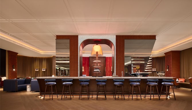 在玖 · 吧,轻松品酒、社交聚会,并欣赏精彩的体育赛事直播,同时享用精酿鸡尾酒、上乘美酒和美味小食。