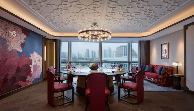 鲜美海味邂逅淮扬经典,融汇粤菜匠心技艺,JIU·LI中餐厅为您打造别具一格的餐饮体验。餐厅设有9间私密包房,最多可容纳12位宾客,打造尊贵雅致的用餐环境,是商务宴请与温馨家庭聚会的理想之选。