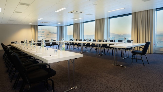 酒店顶楼配有 27 间设计独特的董事会议室供您使用。作为苏黎世的高端会议酒店,我们很荣幸提供免费高速 Wi-Fi 以及先进的视听技术,来提升演示效果。