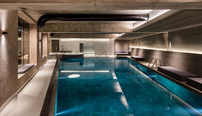 欢迎光临专门提供自我护理服务的一整层楼,宾客可以顺畅无忧地在水疗中心、健身房和泳池获得自在享受,彻底放松身心。我们的水疗中心在设计上模仿了城市的工业风貌,外观散发着更柔和的光泽,您可以在 12 米长的碧绿泳池、毗邻的桑拿室,以及蒸汽室或休息室中尽享宁静。